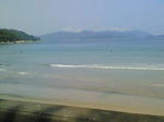 遠くにみえる山々、雲、青い空。